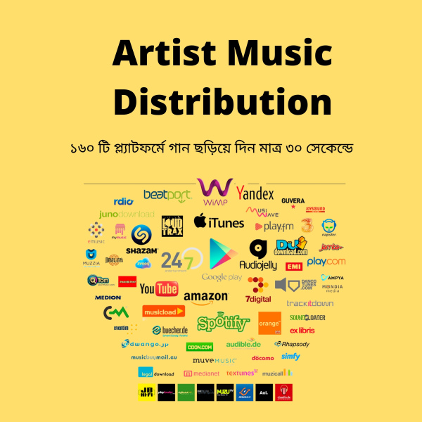 আপনার গান পৌঁছে দিন বিশ্বজুড়ে! স্পটিফাই, অ্যাপল মিউজিক এবং ইউটিউবসহ ১৬০টিরও বেশি প্ল্যাটফর্মে আমরা আপনার গান ডিস্ট্রিবিউট করে দেব মাত্র ৩০ সেকেন্ডে।