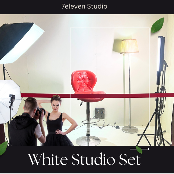 একটি পরিষ্কার এবং মডার্ন লুকের জন্য আমাদের 'White Studio Set' সেরা পছন্দ। মডেল ফটোগ্রাফি বা মিউজিক ভিডিওর জন্য আজই বুক করুন।